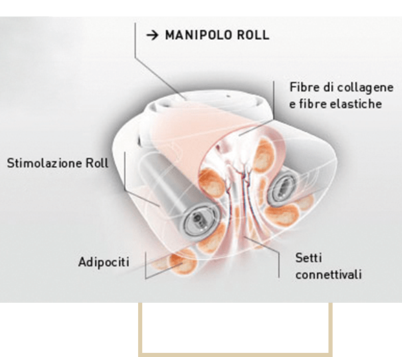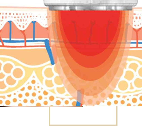 - Masaje endodérmico: el Vacío levanta, pliega y comprime la piel para incrementar la circulación sanguínea local y estimular el drenaje linfático. De ese modo facilita la actividad de los fibroblastos y favorece la vasodilatación, además de difundir el oxígeno, con una precisa distribución de la energía.